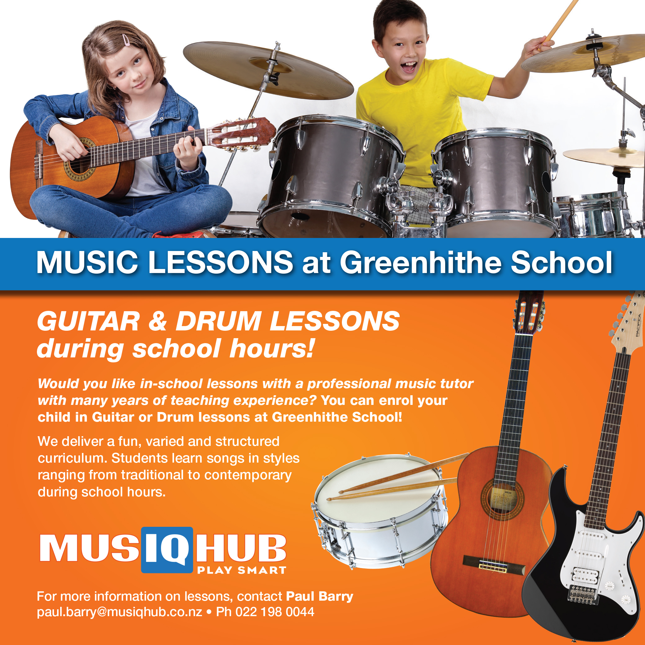Music Lessons at Greenhithe School! Our good friends at Musiqhub are happy to announce that they’ll have some spaces opening up in Term 1 for new students. They offer Guitar and Drum lessons onsite during school hours. Please get in touch with [email protected] for more info or to reserve a spot!